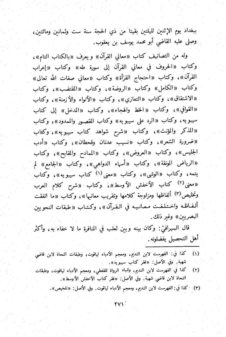 (¬1) كذا في: الفهرست لابن النديم، ومعجم الأدباء لياقوت، وطبقات النحاة لابن قاضي شهبة. وفي الأصل: «فقر كتاب سيبويه».