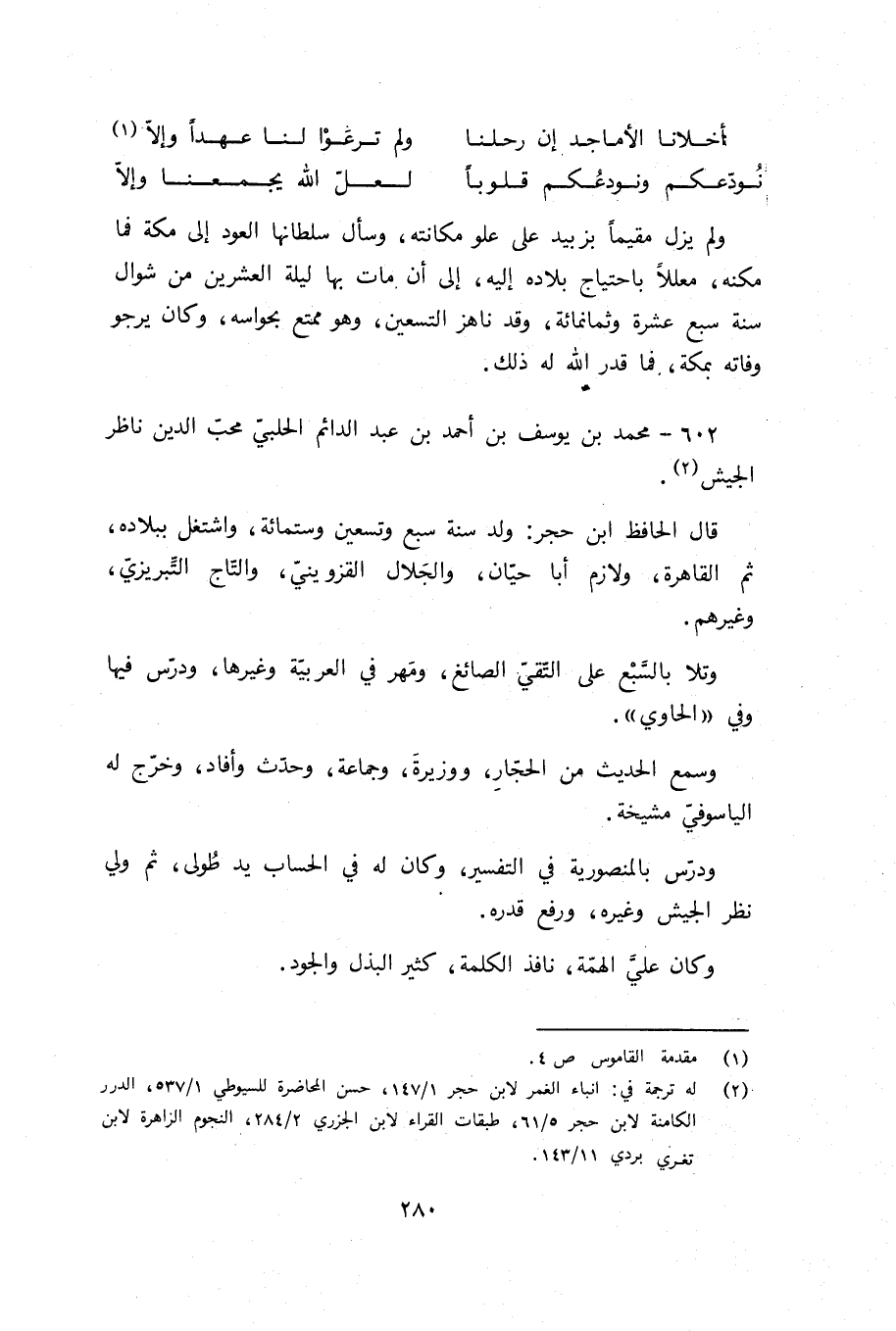 (¬2) له ترجمة في: انباء الغمر لابن حجر 1/ 147، حسن المحاضرة للسيوطي 1/ 537، الدرر الكامنة لابن حجر 5/ 61، طبقات القراء لابن الجزري 2/ 284، النجوم الزاهرة لابن تغري بردي 11/ 143.