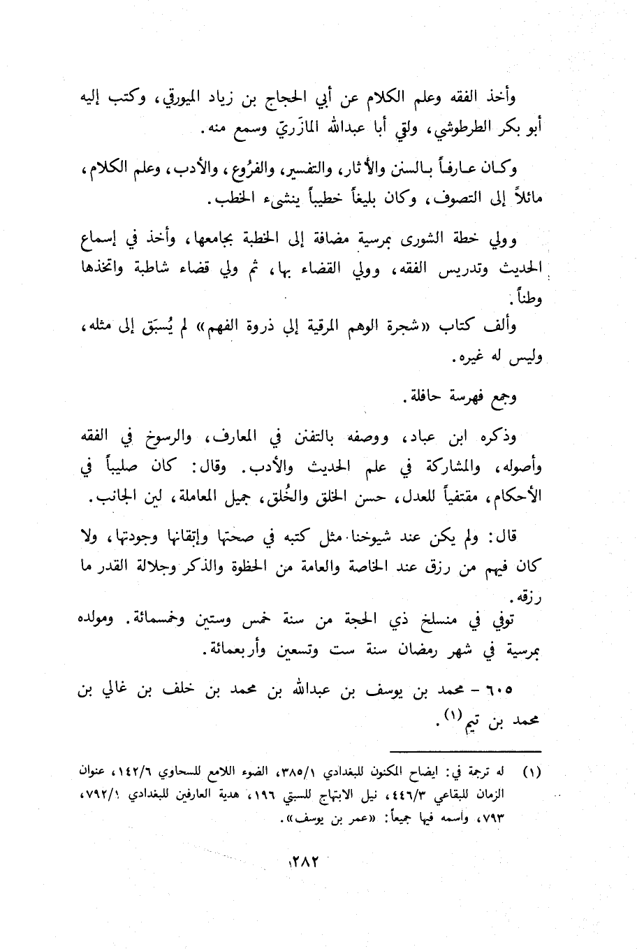 605 - محمد بن يوسف بن عبد الله بن محمد بن خلف بن غالي بن محمد بن تيم (¬1).