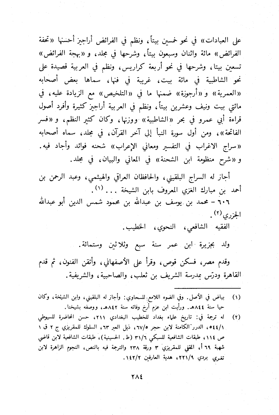 606 - محمد بن يوسف بن عبد الله بن محمود شمس الدين أبو عبد الله الجزري (¬2).