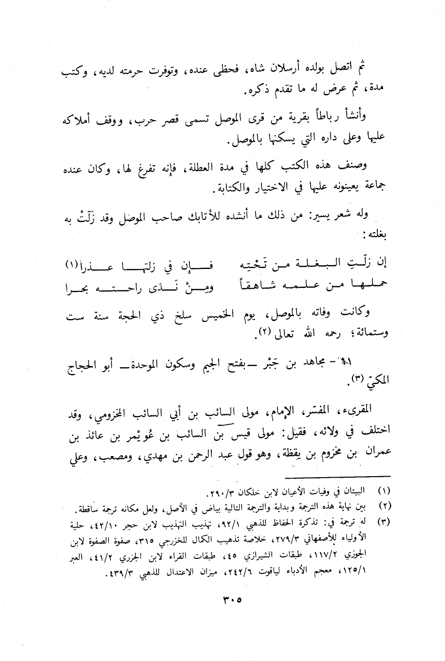(¬2) بين نهاية هذه الترجمة وبداية والترجمة التالية بياض في الأصل، ولعل مكانه ترجمة ساقطة.