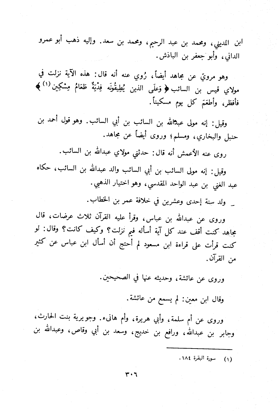 وروى عن عبد الله بن عباس، وقرأ عليه القرآن ثلاث عرضات، قال مجاهد كنت أقف عند كل آية أسأله فيم نزلت؟ وكيف كانت؟ وقال: لو كنت قرأت على قراءة ابن مسعود لم أحتج أن أسأل ابن عباس عن كثير من القرآن.