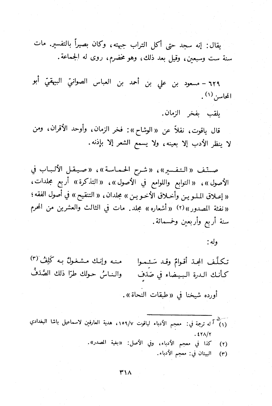 629 - مسعود بن علي بن أحمد بن العباس الصوانيّ البيهقيّ أبو المحاسن (¬1).