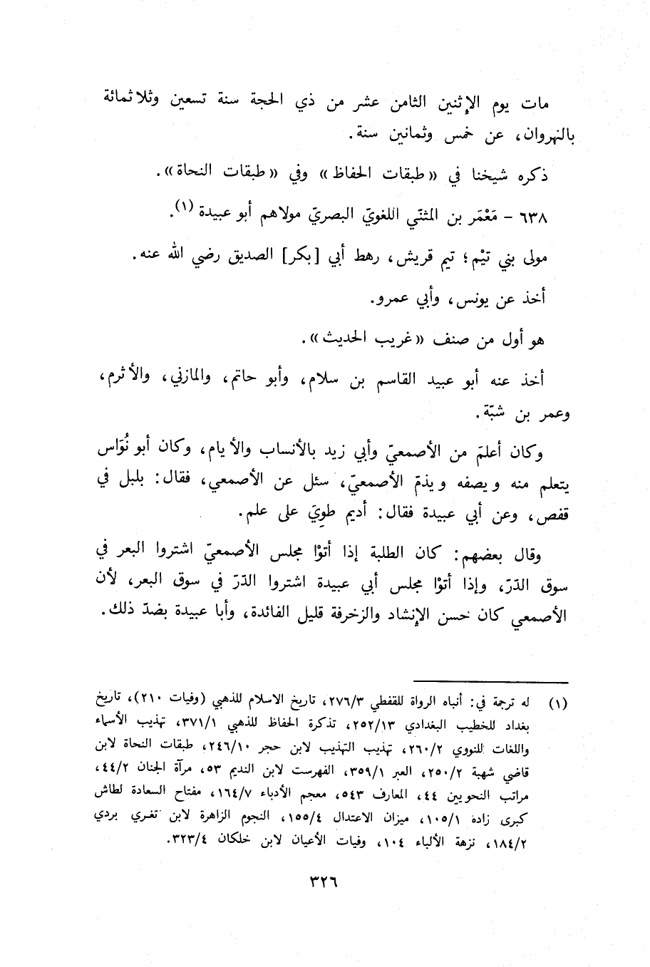 638 - معمر بن المثنّى اللغويّ البصريّ مولاهم أبو عبيدة (¬1).