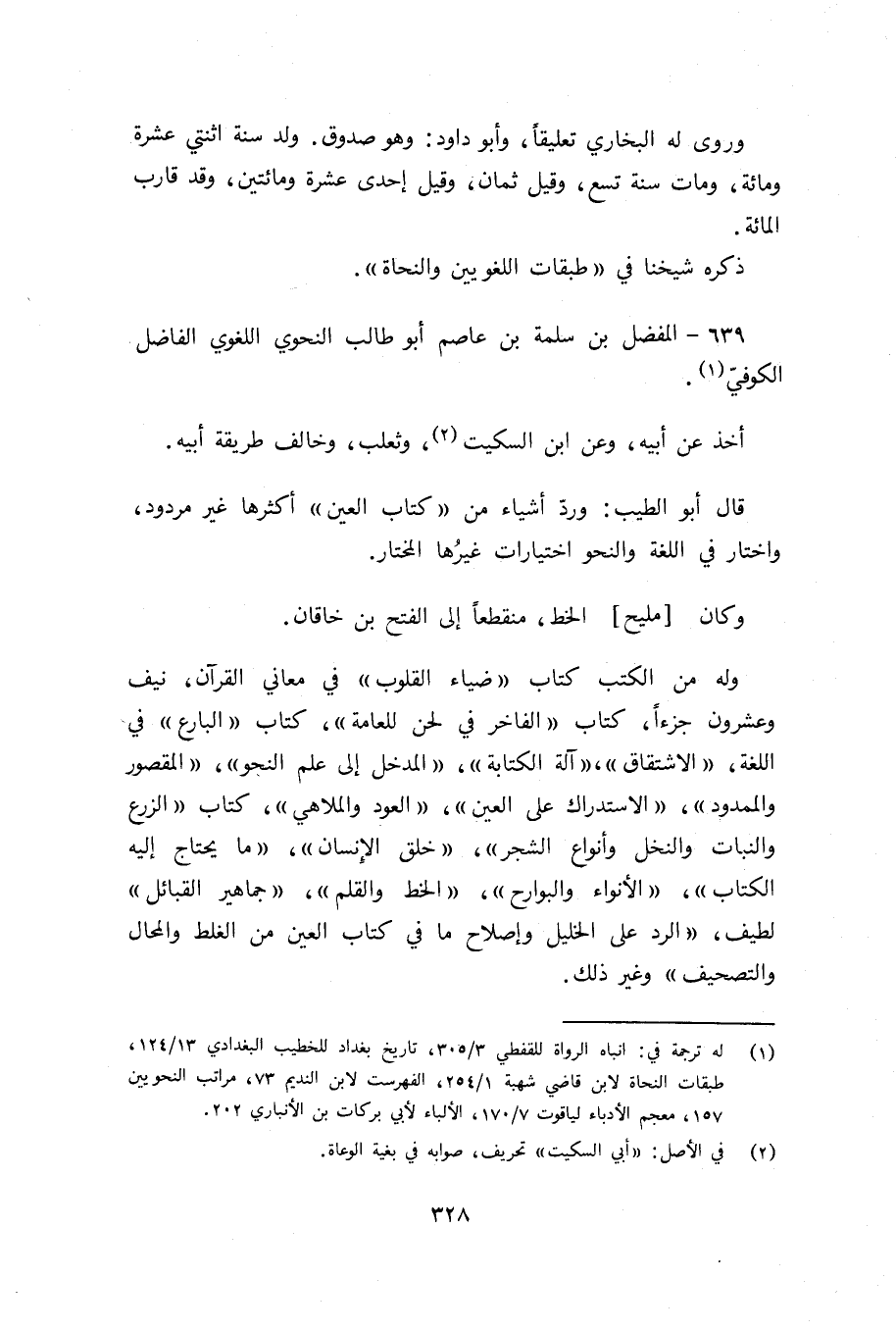 639 - المفضل بن سلمة بن عاصم أبو طالب النحوي اللغوي الفاضل الكوفيّ (¬1).