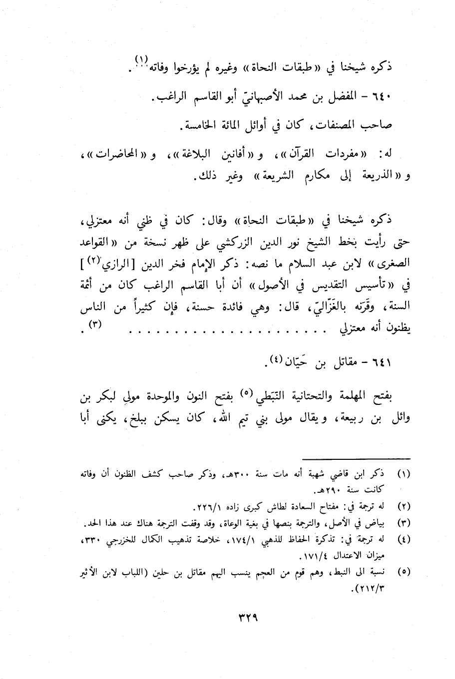 (¬5) نسبة الى النبط، وهم قوم من العجم ينسب اليهم مقاتل بن حلين (اللباب لابن الأثير 3/ 212).