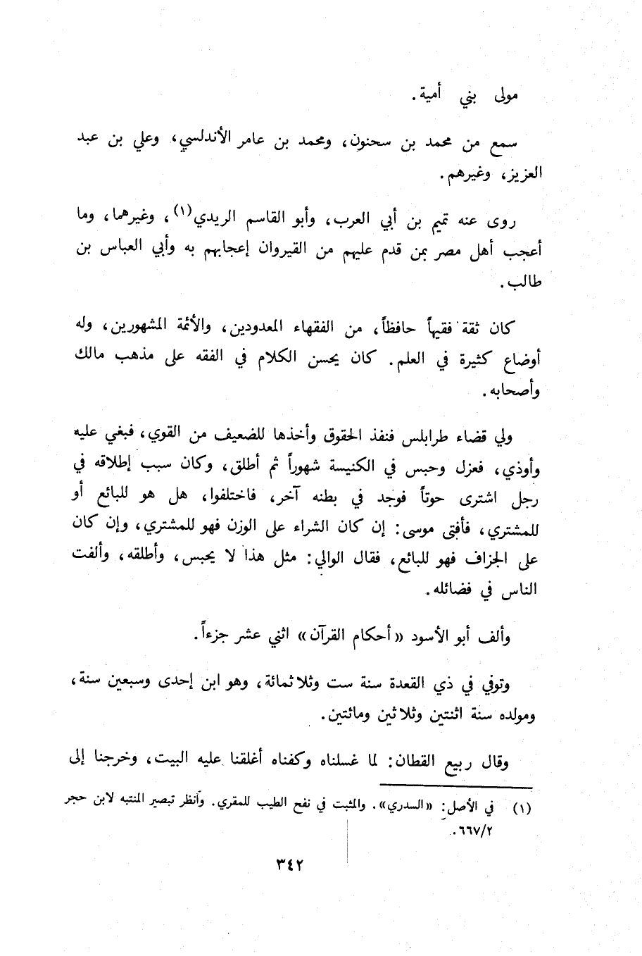 وتوفي في ذي القعدة سنة ست وثلاثمائة، وهو ابن إحدى وسبعين سنة، ومولده سنة اثنتين وثلاثين ومائتين.