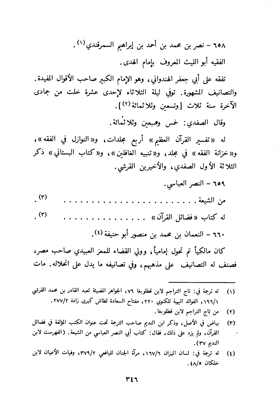 (¬3) بياض في الأصل، وذكر ابن النديم صاحب الترجمة تحت عنوان الكتب المؤلفة في فضائل القرآن، ولم يزد على ذلك، فقال: كتاب أبي النصر العباسي من الشيعة. (الفهرست لابن النديم 37).