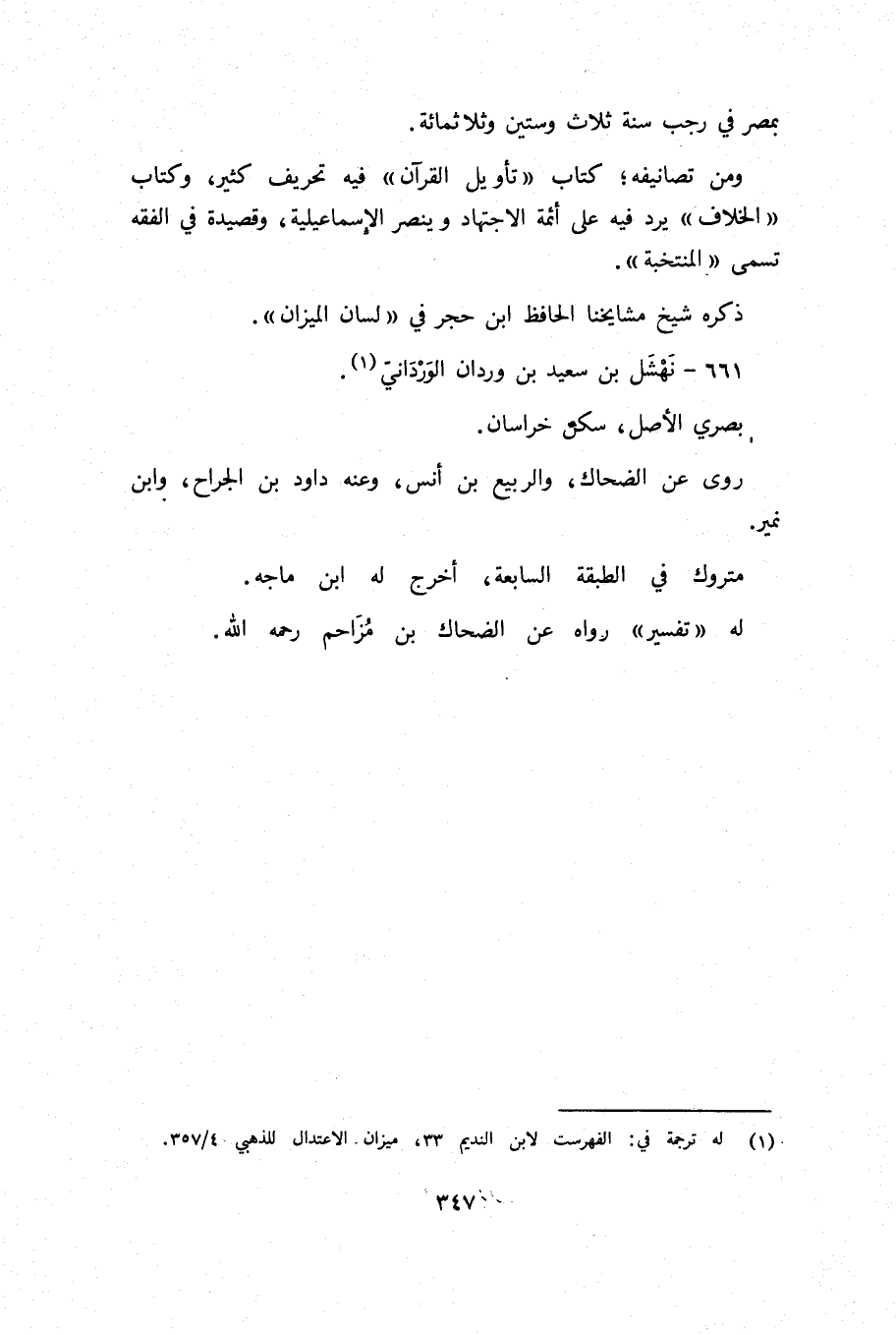 (¬1) له ترجمة في: الفهرست لابن النديم 33، ميزان الاعتدال للذهبي 4/ 357.