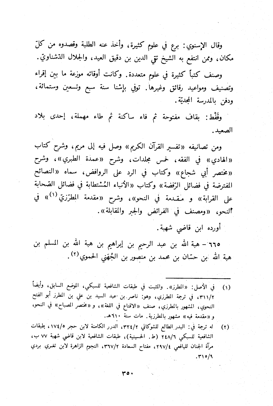 665 - هبة الله بن عبد الرحيم بن إبراهيم بن هبة الله بن المسلم بن هبة الله بن حسّان بن محمد بن منصور بن الجهني الحموي (¬2).