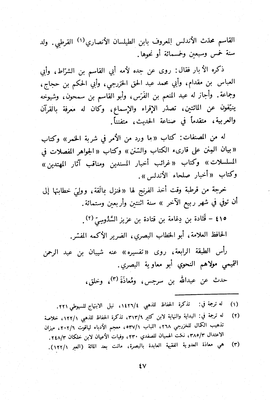 القاسم محدث الأندلس المعروف بابن الطيلسان الأنصاري (¬1) القرطبي. ولد سنة خمس وسبعين وخمسمائة أو نحوها.