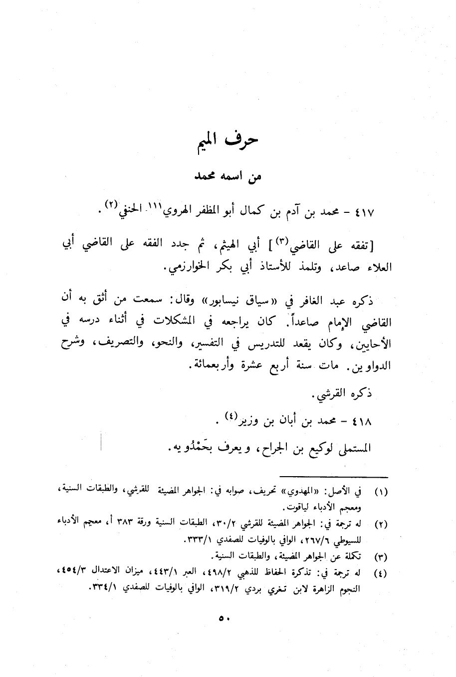 417 - محمد بن آدم بن كمال أبو المظفر الهروي (¬1) الحنفي (¬2).