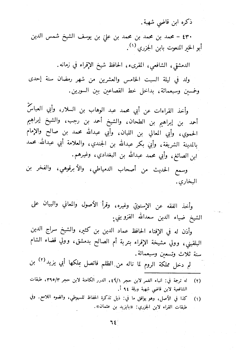 430 - محمد بن محمد بن محمد بن علي بن يوسف الشيخ شمس الدين أبو الخير المنعوت بابن الجزري (¬1).