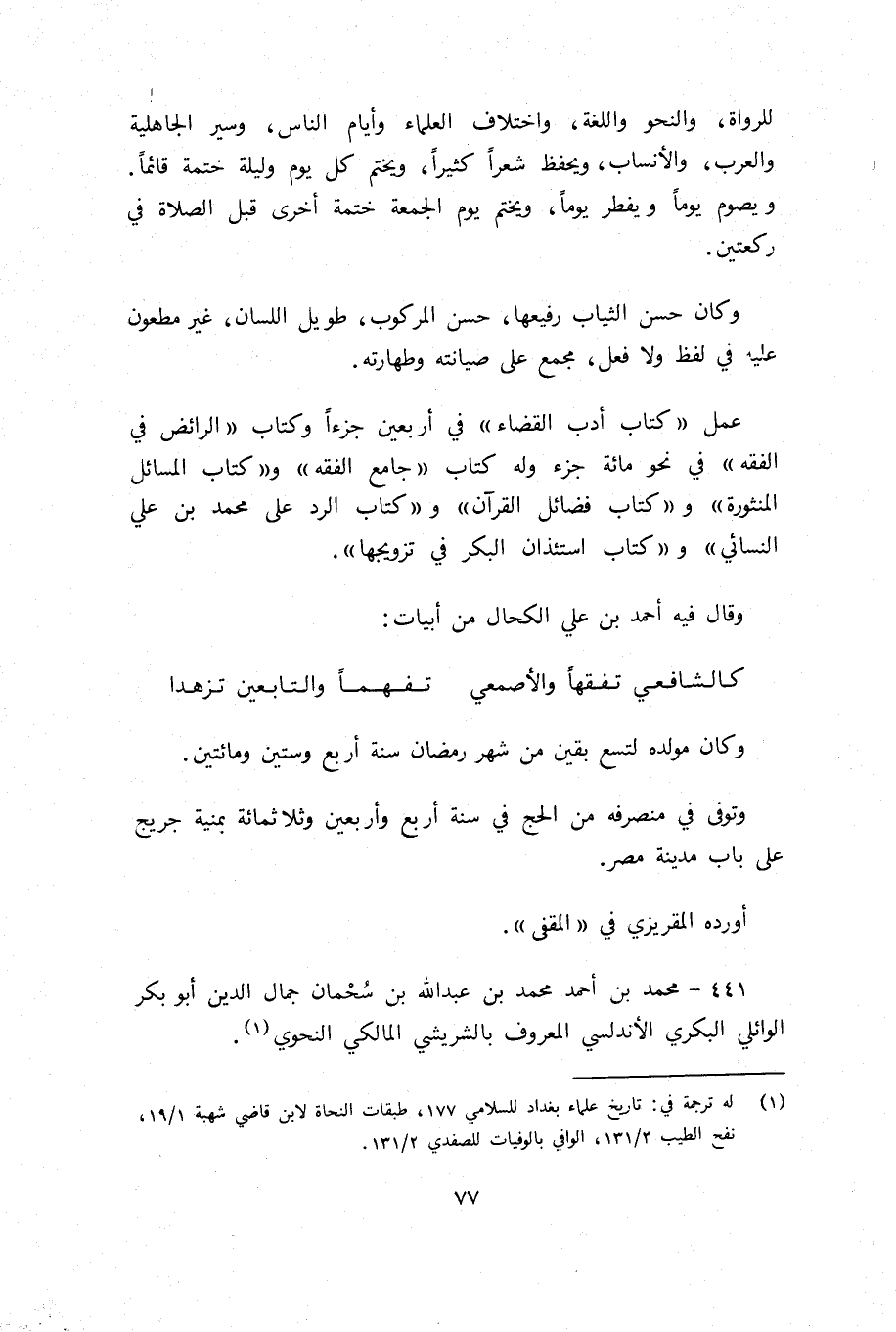 (¬1) له ترجمة في: تاريخ علماء بغداد للسلامي 177، طبقات النحاة لابن قاضي شهبة 1/ 19، نفح الطيب 2/ 131، الوافي بالوفيات للصفدي 2/ 131.