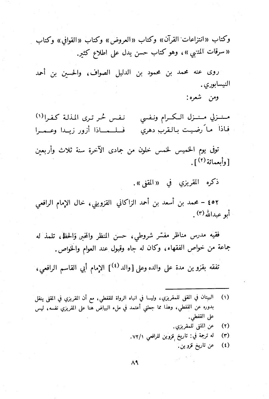 452 - محمد بن أسعد بن أحمد الزاكاني القزويني، خال الإمام الرافعي أبو عبد الله (¬3).