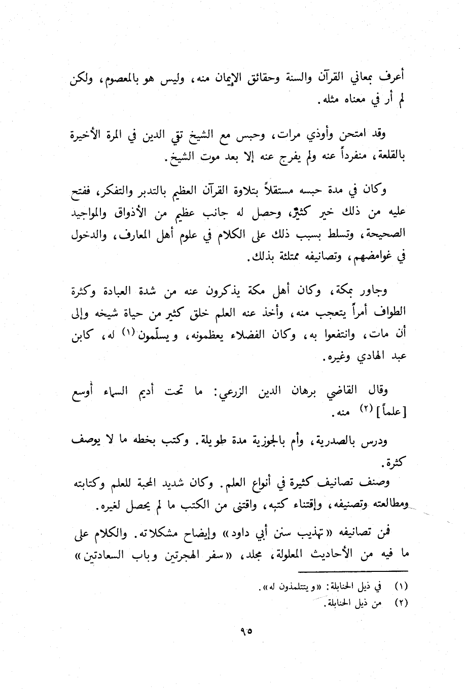 وكان في مدة حبسه مستقلا بتلاوة القرآن العظيم بالتدبر والتفكر، ففتح عليه من ذلك خير كثير، وحصل له جانب عظيم من الأذواق والمواجيد الصحيحة، وتسلط بسبب ذلك على الكلام في علوم أهل المعارف، والدخول في غوامضهم، وتصانيفه ممتلئة بذلك.