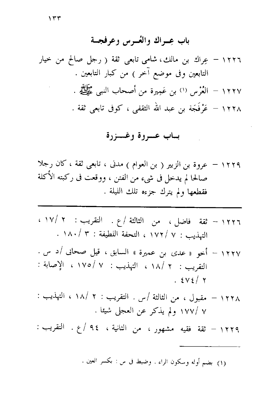 1226 - عرَاك بن مَالك شَامي تَابِعِيّ ثِقَة رجل صَالح من خِيَار التَّابِعين وفى مَوضِع آخر من كبار التَّابِعين