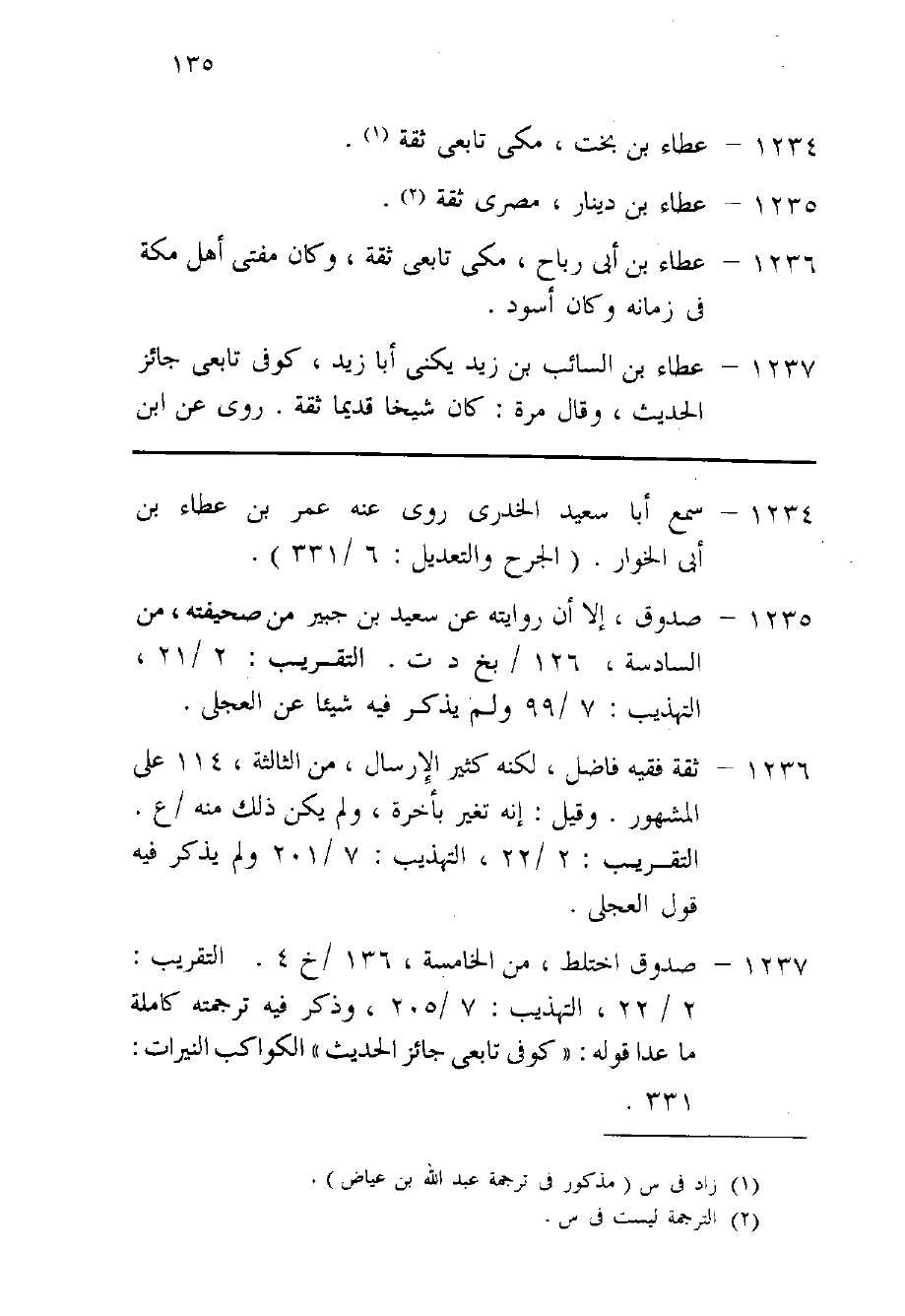 1236 - عَطاء بن أبي رَبَاح مكي تَابِعِيّ ثِقَة وَكَانَ مفتي أهل مَكَّة فِي زَمَانه وَكَانَ اسود