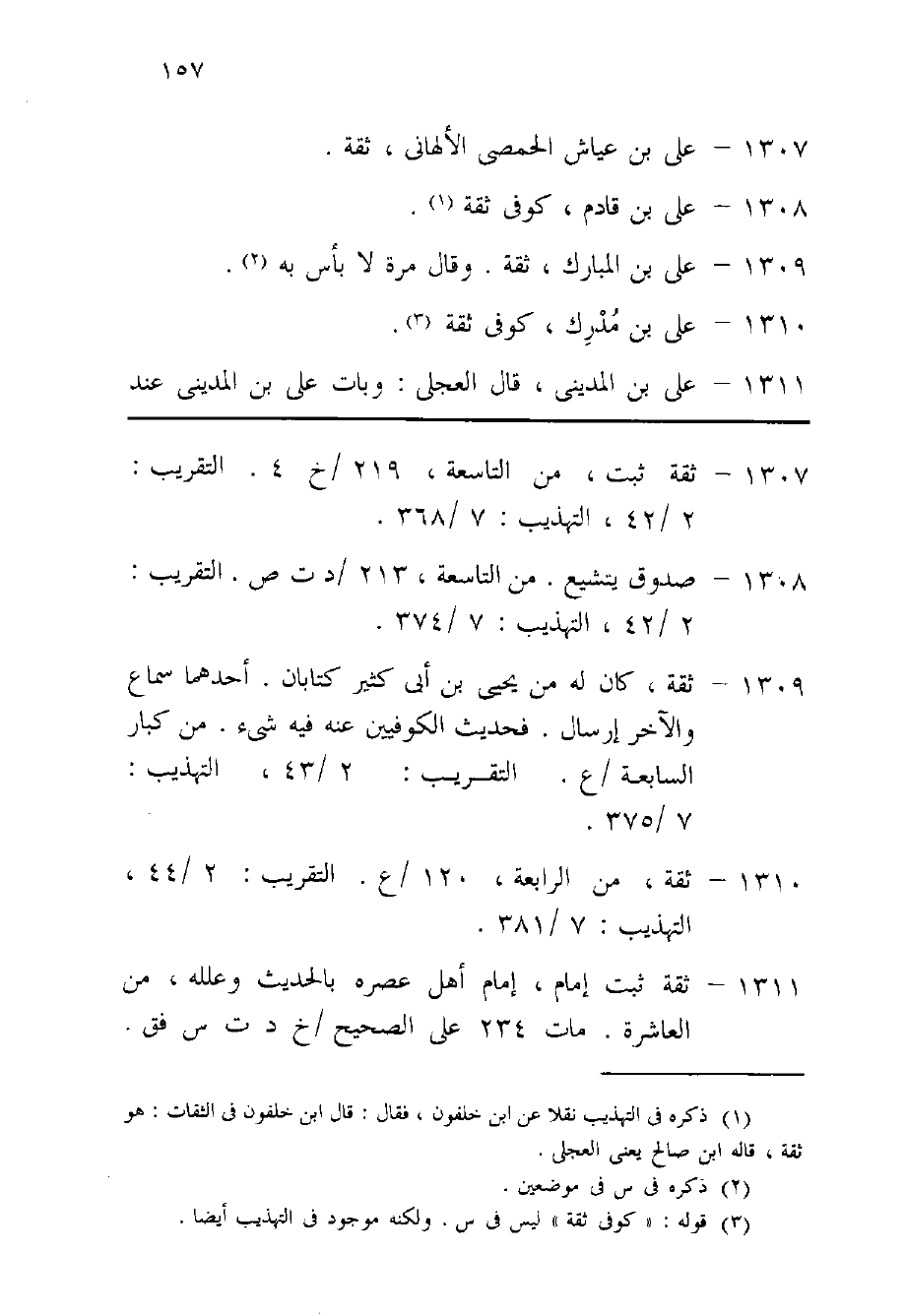 1311 - على بن الْمَدِينِيّ قَالَ الْعجلِيّ وَبَات على بن الْمَدِينِيّ عِنْد عبد الله بن دَاوُد الْحَفرِي بالخريبة فَدخل حَانُوت بقال يتعشى فَقَالَ لَهُ عبد الله لَو صبرت لَيْلَة وَاحِدَة أَكنت تَمُوت أَيْن الدّين أَيْن الْمُرُوءَة مَالك مُرُوءَة وَلَا نبل