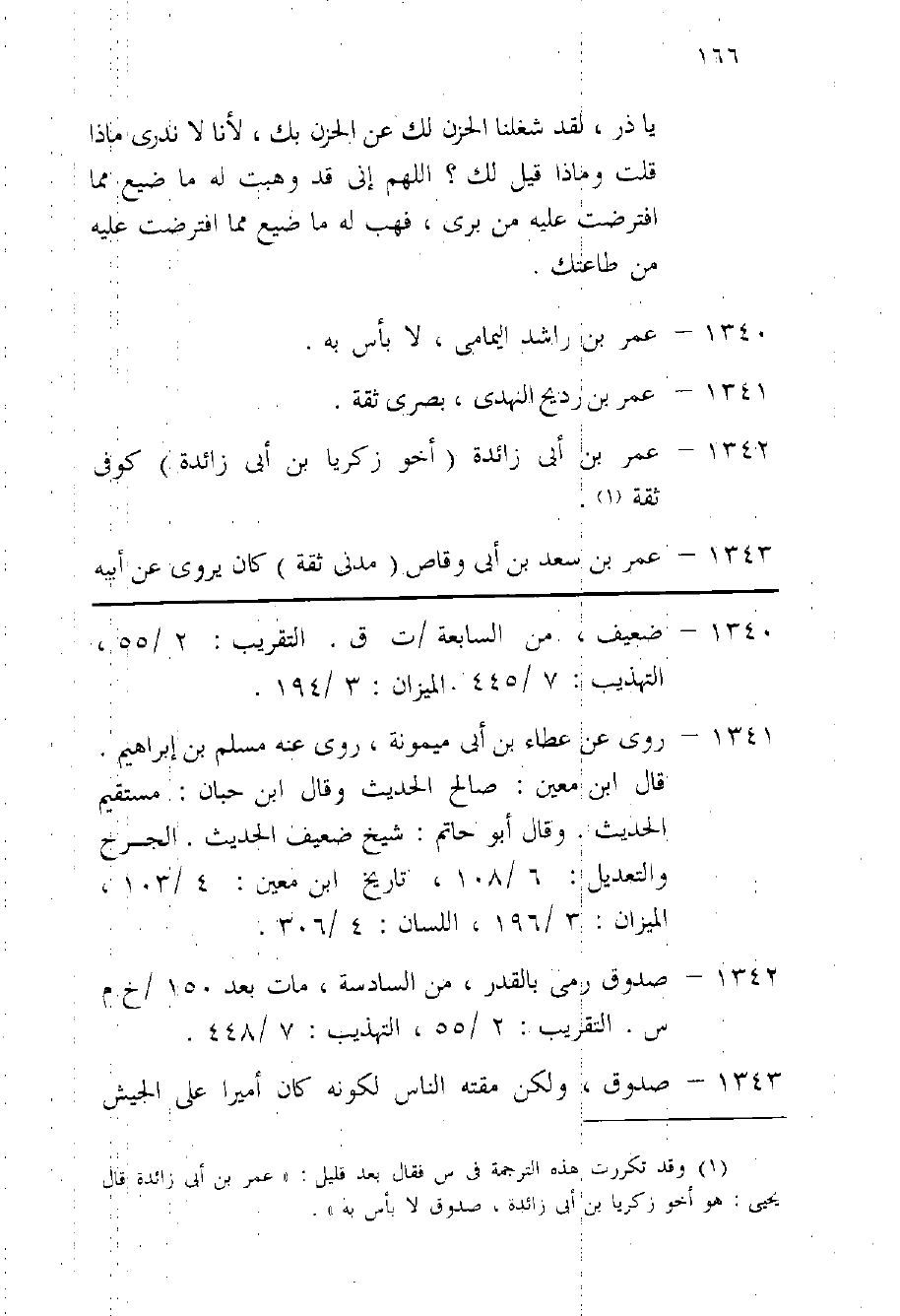 1343 - عمر بن سعد بن أبي وَقاص مدنِي ثِقَة كَانَ يروي عَن أَبِيه أَحَادِيث وروى النَّاس عَنهُ وَهُوَ الَّذِي قتل الْحُسَيْن قلت كَانَ أَمِير الْجَيْش وَلم يُبَاشر قَتله