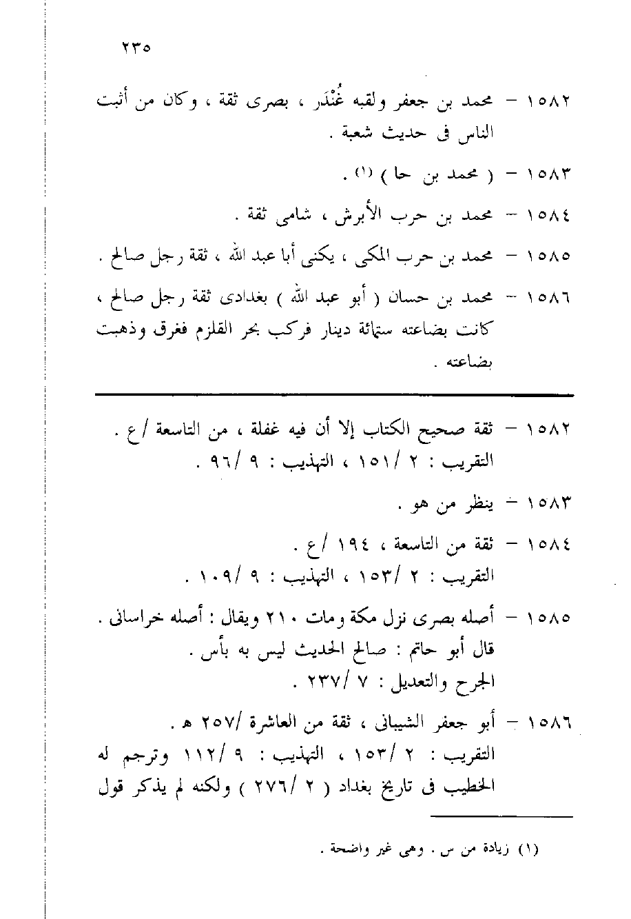1586 - مُحَمَّد بن حسان أَبُو عبد الله بغدادي ثِقَة رجل صَالح كَانَت بضاعته سِتّمائَة دِينَار فَركب بَحر القلزم فغرق وَذَهَبت بضاعته