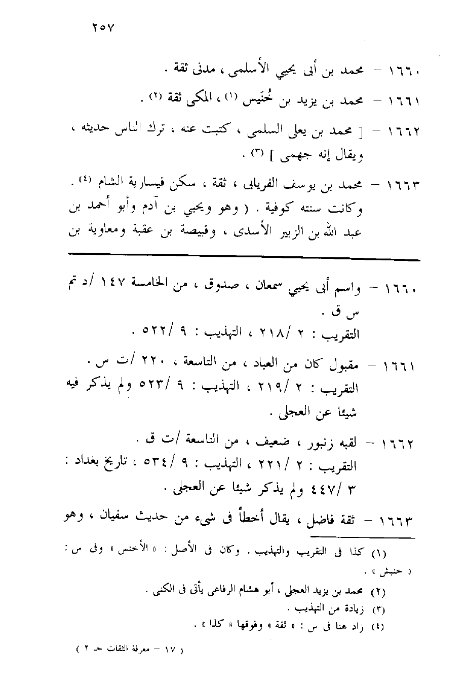 1663 - مُحَمَّد بن يُوسُف الْفرْيَابِيّ ثِقَة سكن قيسارية الشَّام وَكَانَت سنته كوفية وَهُوَ وَيحيى بن آدم وَأَبُو أَحْمد بن عبد الله بن الزبير الْأَسدي وَقبيصَة بن عقبَة وَمُعَاوِيَة بن هِشَام ثِقَات وهم فِي الرِّوَايَة عَن سُفْيَان قريب بَعضهم من بعض قَالَ لي بعض البغداديين أخطا مُحَمَّد بن يُوسُف فِي خمسين وَمِائَة حَدِيث من حَدِيث سُفْيَان