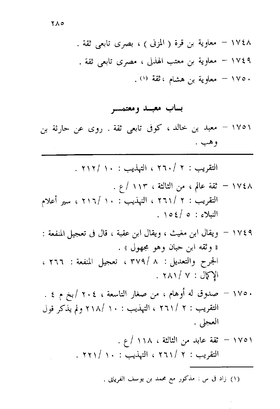 1751 - معبد بن خَالِد كوفى تَابِعِيّ ثِقَة روى عَن حَارِثَة بن وهب