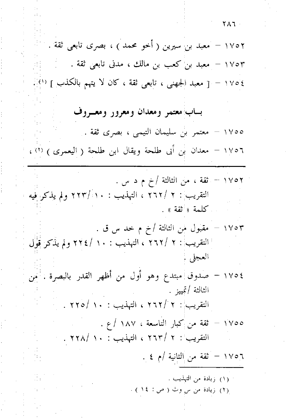 1754 - معبد الْجُهَنِيّ تَابِعِيّ ثِقَة كَانَ لَا يتهم بِالْكَذِبِ