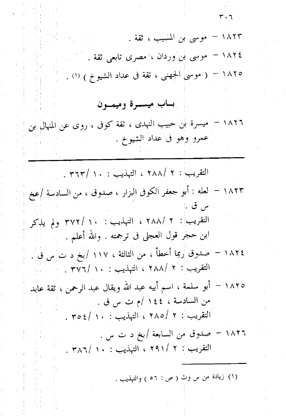 1826 - ميسرَة بن حبيب النَّهْدِيّ ثِقَة كوفى روى عَن الْمنْهَال بن عَمْرو وَهُوَ فِي عداد الشُّيُوخ