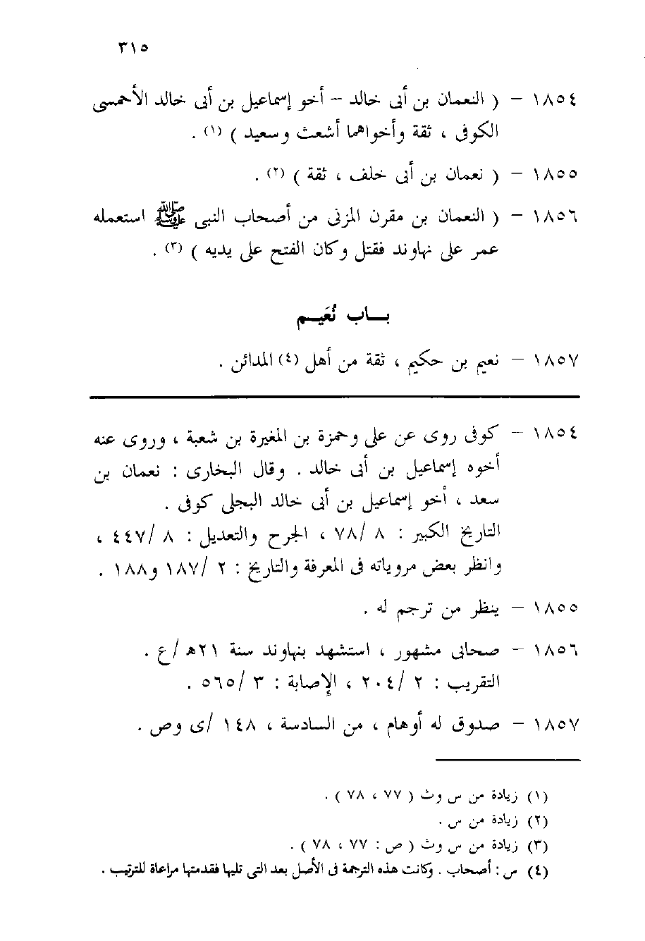 1854 - النُّعْمَان بن أبي خَالِد أَخُو إِسْمَاعِيل بن أبي خَالِد الأحمسي الكوفى ثِقَة وأخواهما أَشْعَث وَسَعِيد