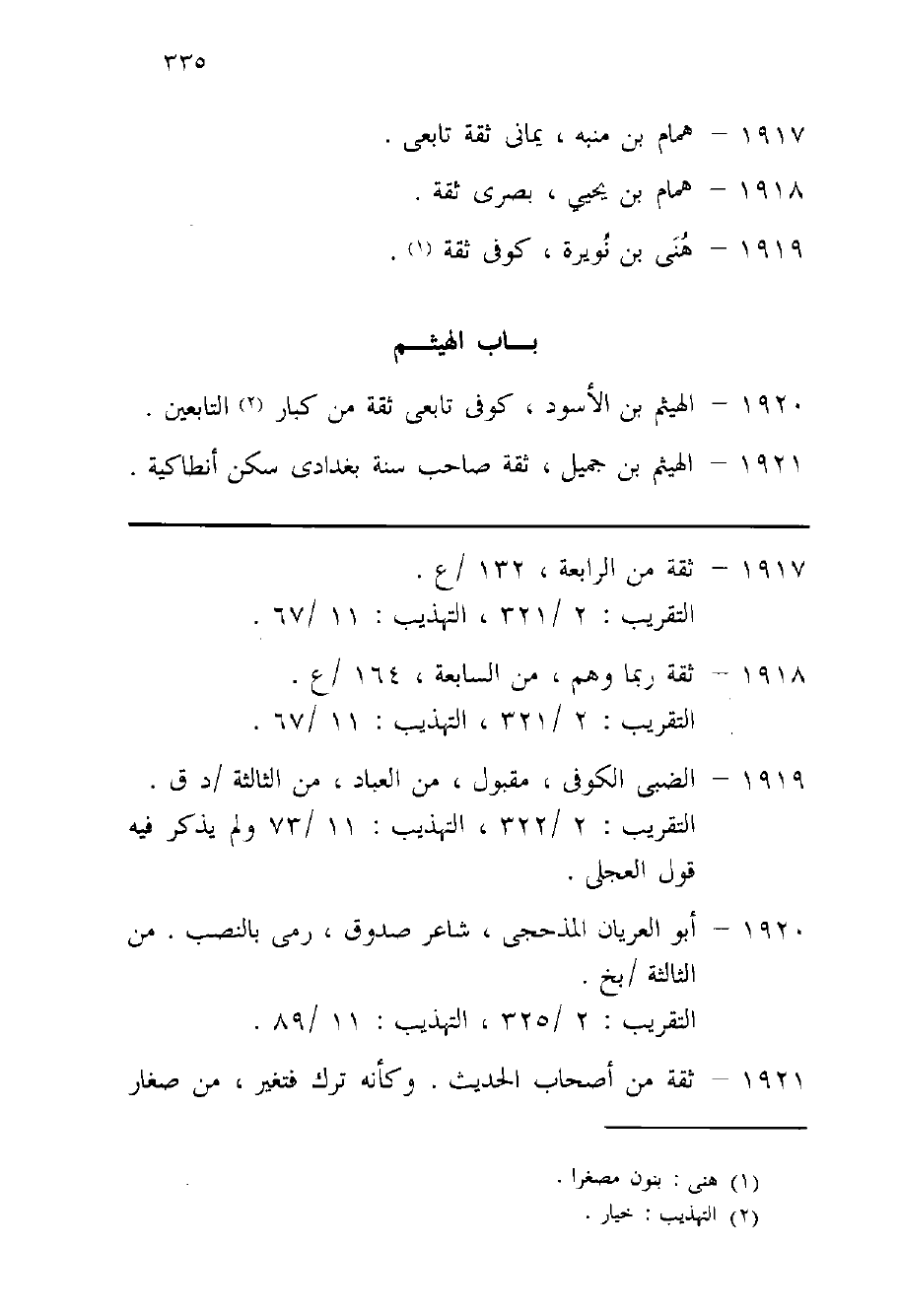 1920 - الْهَيْثَم بن الْأسود كوفى تَابِعِيّ ثِقَة من كبار التَّابِعين
