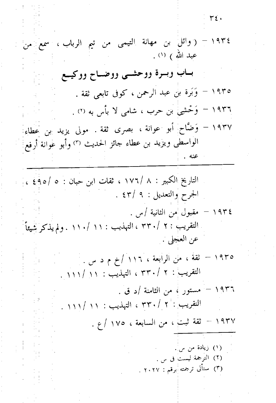 1935 - وبرة بن عبد الرَّحْمَن كوفى تَابِعِيّ ثِقَة
