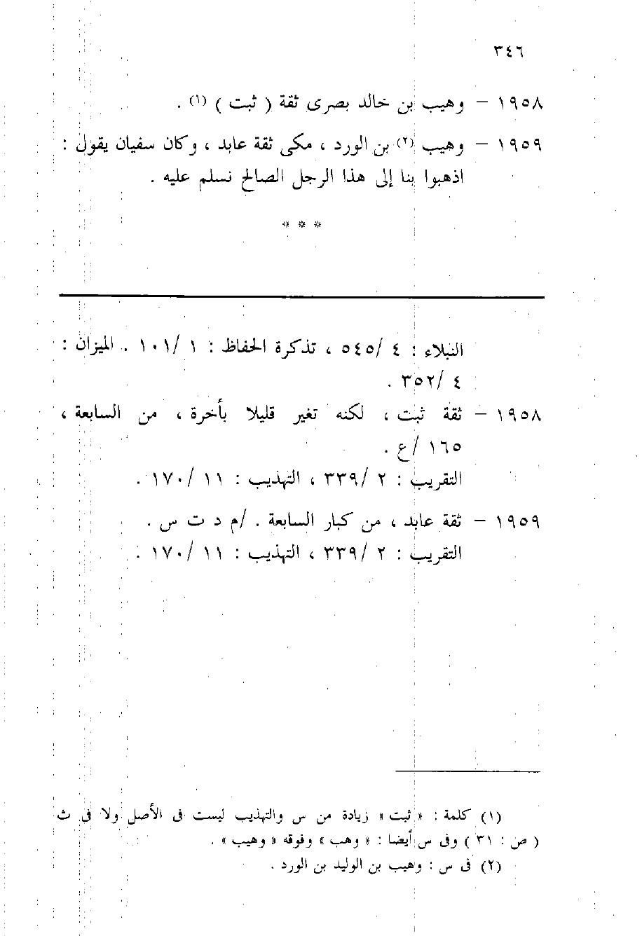 1959 - وهيب بن الْورْد مكي ثِقَة عَابِد وَكَانَ سُفْيَان يَقُول اذْهَبُوا بِنَا إِلَى هَذَا الرجل الصَّالح نسلم عَلَيْهِ
