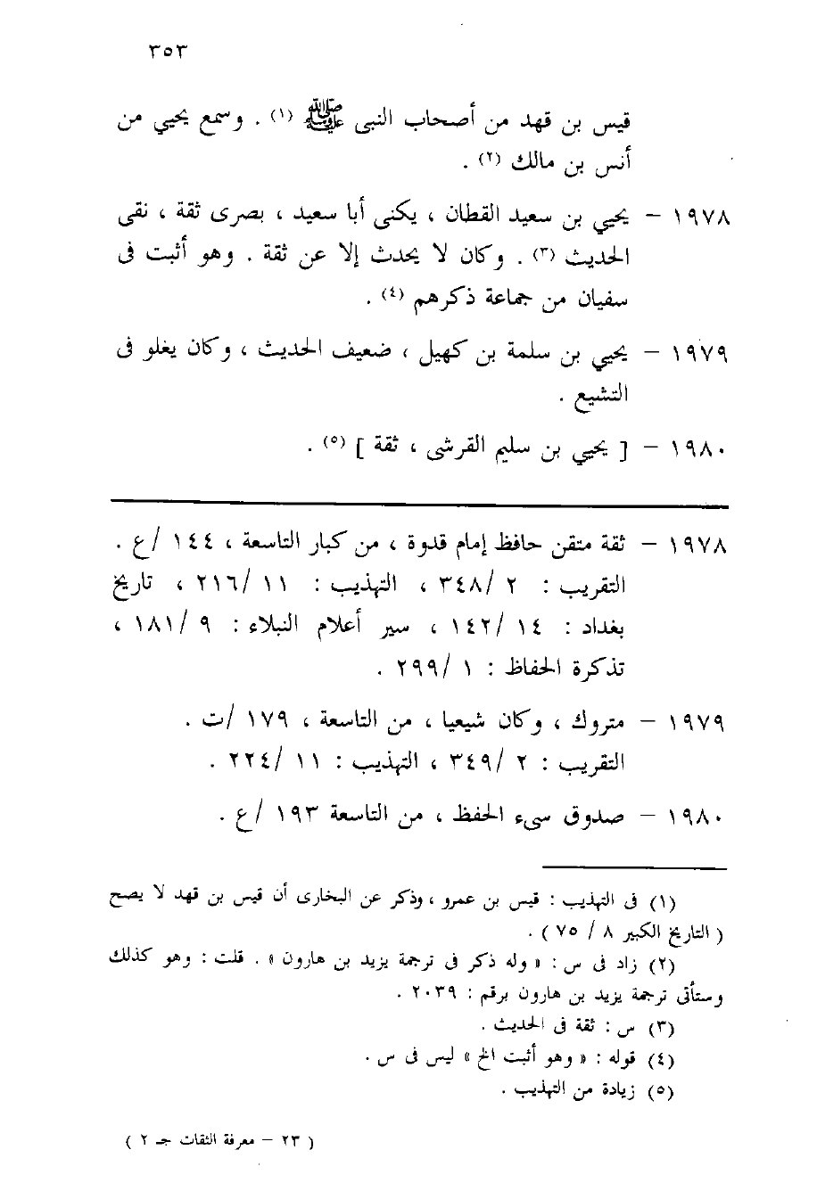 1978 - يحيى بن سعيد الْقطَّان يكنى أَبَا سعيد بصرى ثِقَة نقى الحَدِيث وَكَانَ لَا يحدث إِلَّا عَن ثِقَة وَهُوَ أثبت فِي سُفْيَان من جمَاعَة ذكرهم
