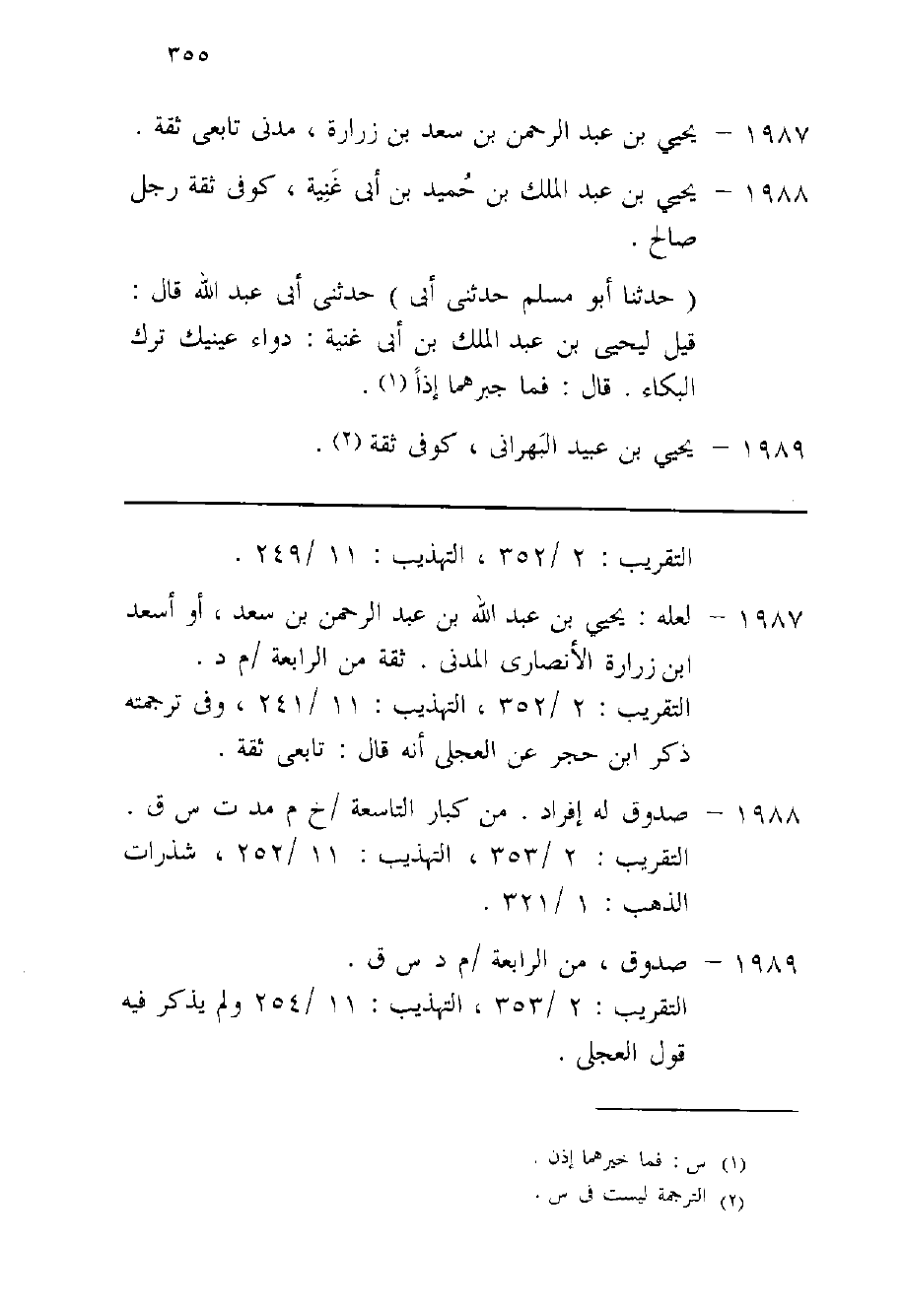 1989 - يحيى بن عبيد البهراني كُوفِي ثِقَة
