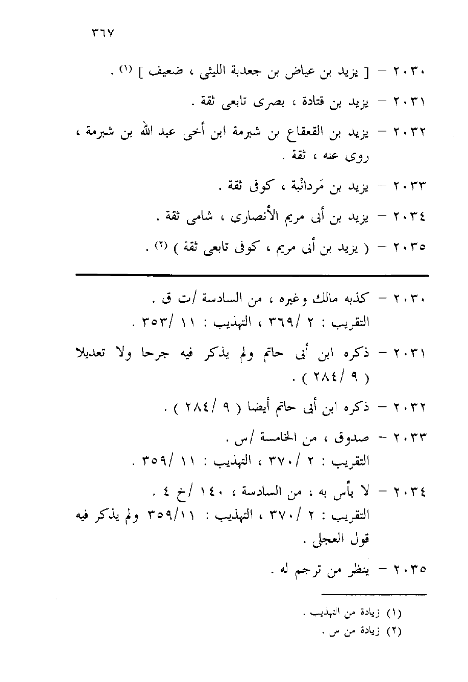 2036 - يزِيد بن مُعَاوِيَة النَّخعِيّ بابة الرّبيع من أَصْحَاب عبد الله ثِقَة