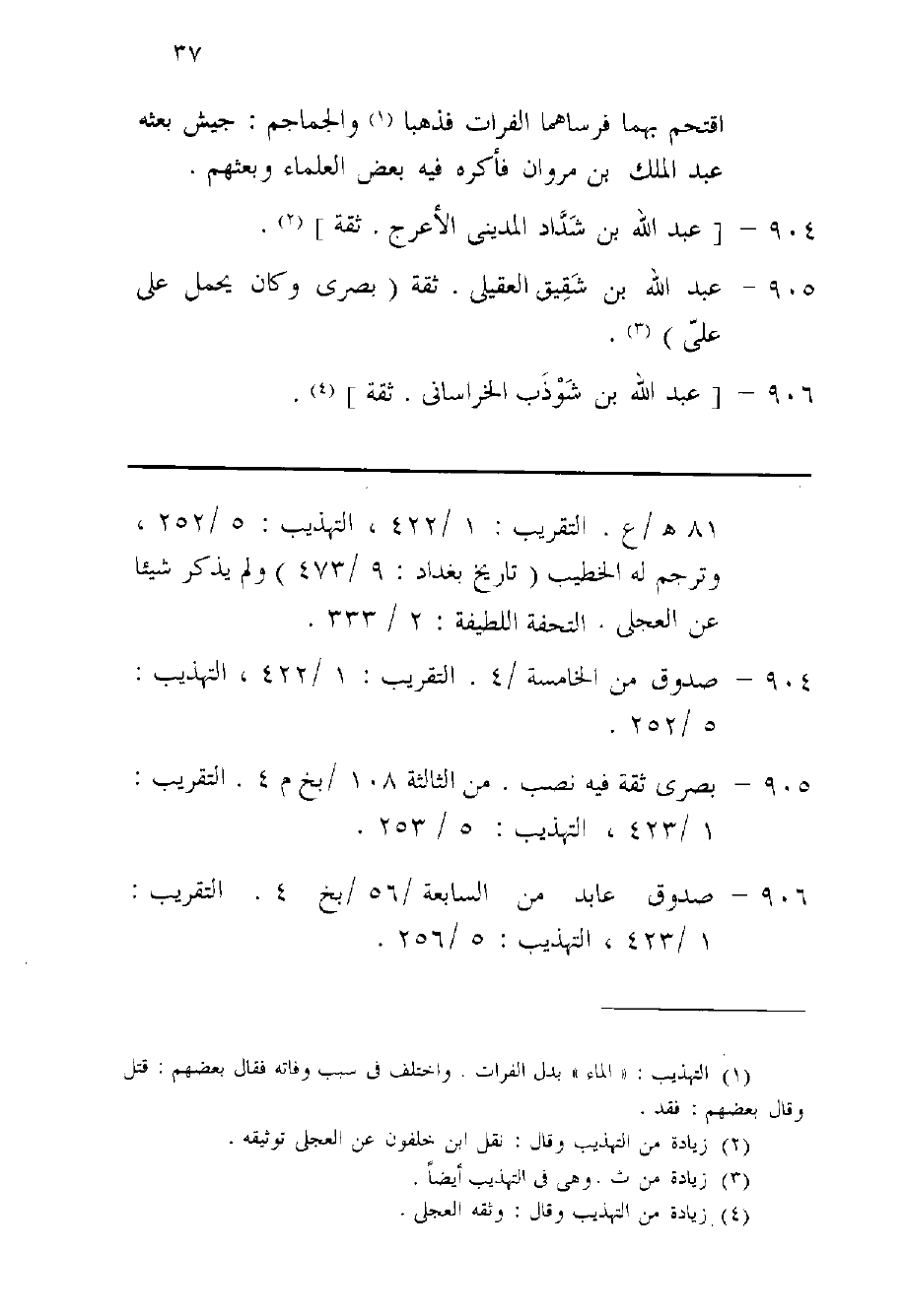 905 - عبد الله بن شَقِيق الْعقيلِيّ ثِقَة بصرى وَكَانَ يحمل على على