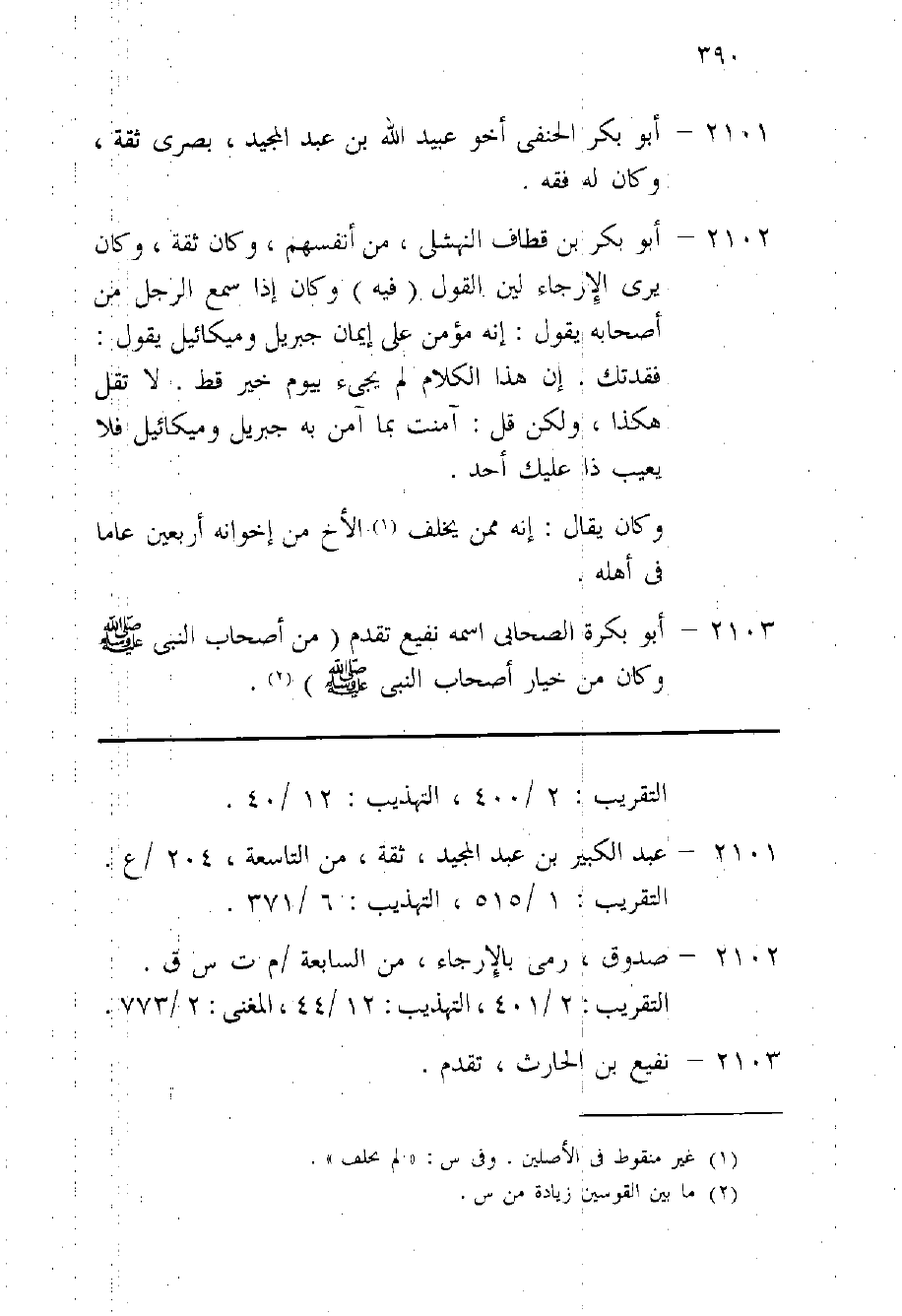 2103 - أَبُو بكرَة الصَّحَابِيّ اسْمه نفيع تقدم من أَصْحَاب النَّبِي صلى الله عَلَيْهِ وَسلم وَكَانَ من خِيَار أَصْحَاب النَّبِي صلى الله عَلَيْهِ وَسلم