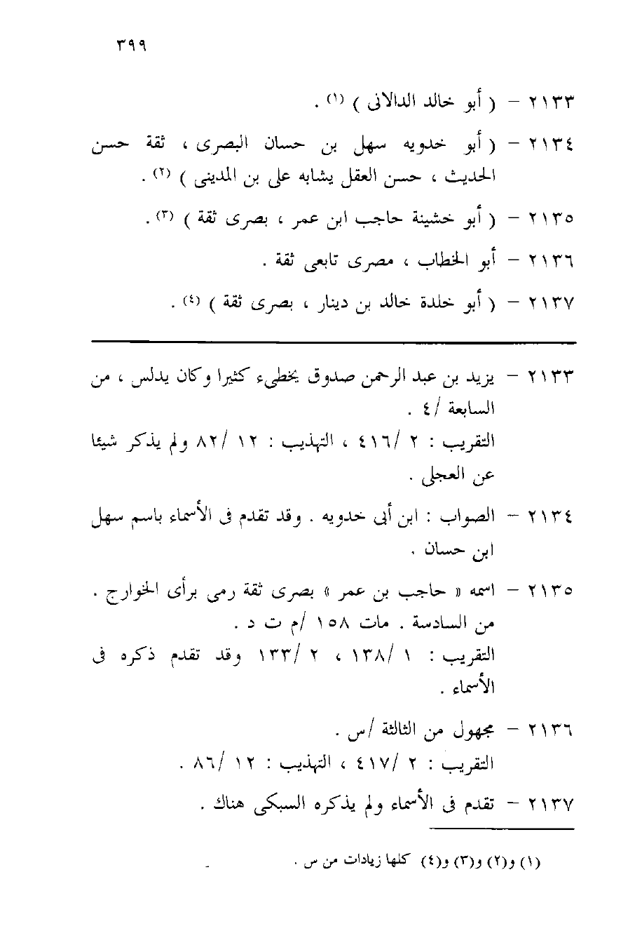 2134 - أَبُو خدويه سهل بن حسان الْبَصْرِيّ ثِقَة حسن الحَدِيث حسن الْعقل يشابه على بن الْمَدِينِيّ