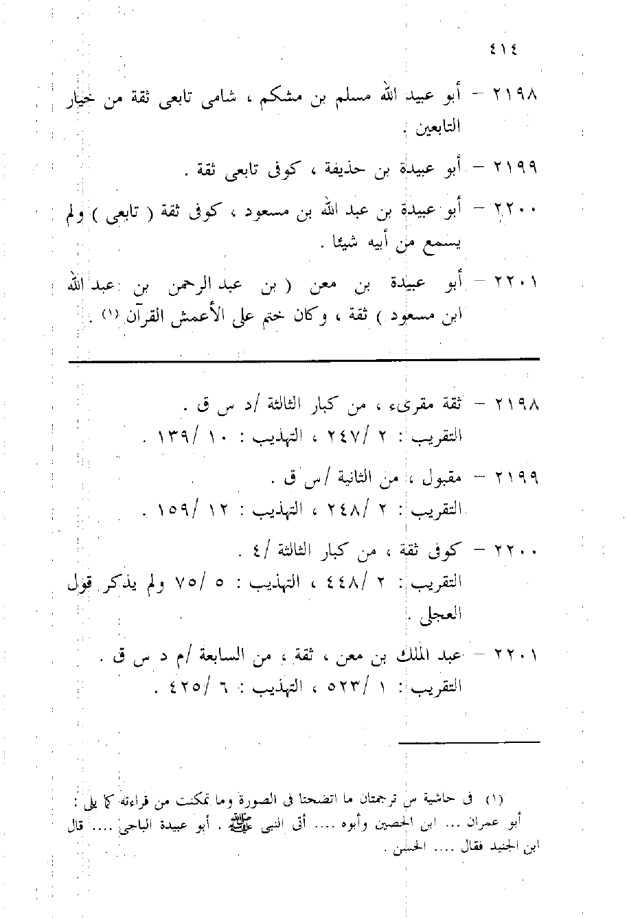 2200 - أَبُو عُبَيْدَة بن عبد الله بن مَسْعُود كوفى ثِقَة تَابِعِيّ وَلم يسمع من أَبِيه شَيْئا