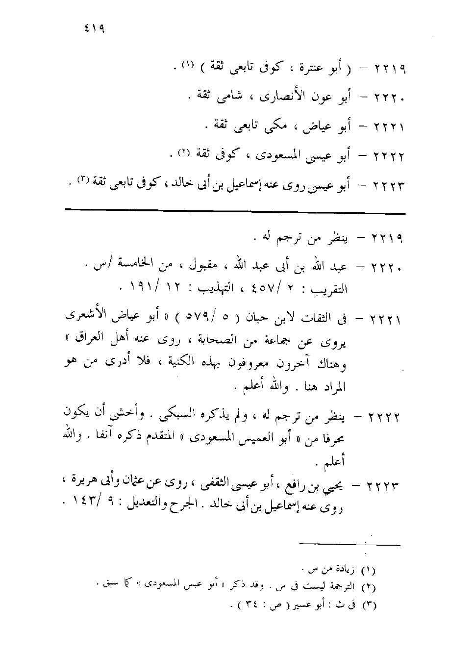 2223 - أَبُو عِيسَى روى عَنهُ إِسْمَاعِيل بن أبي خَالِد كوفى تَابِعِيّ ثِقَة