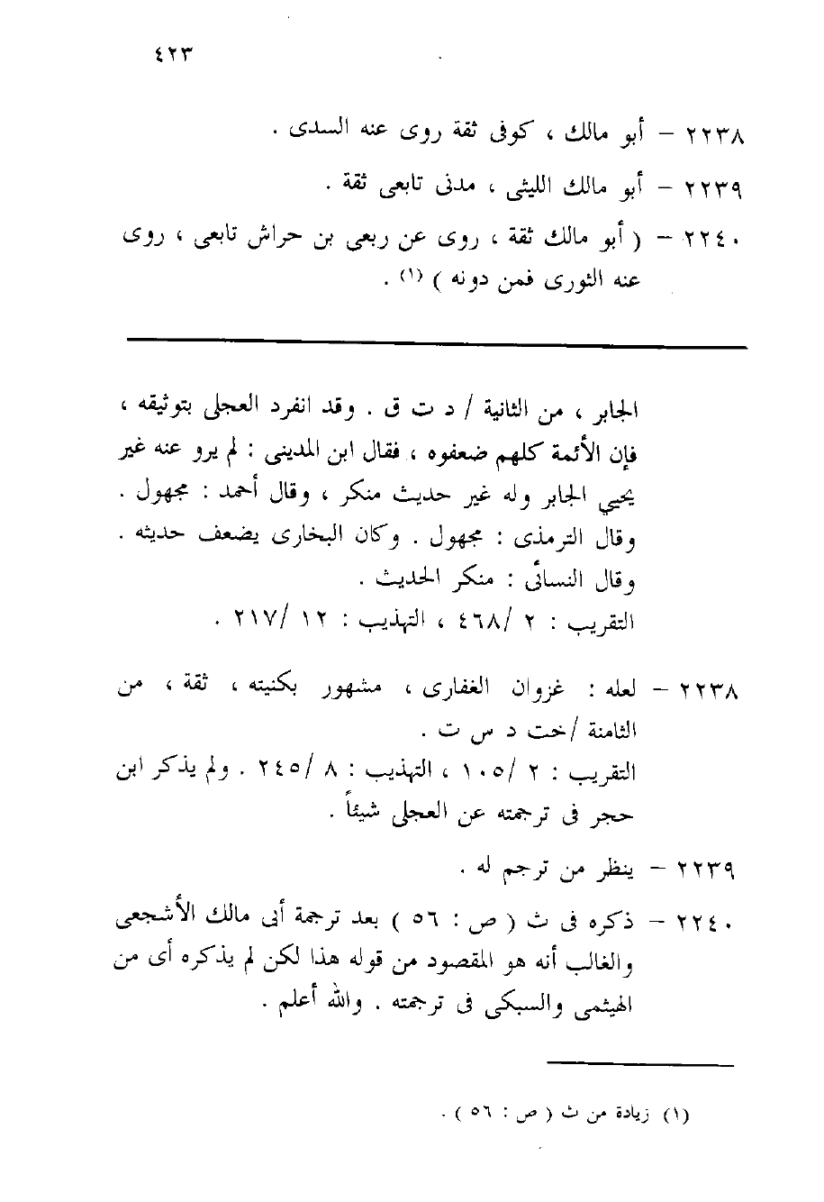 2240 - أَبُو مَالك ثِقَة روى عَن ربعى بن حِرَاش تَابِعِيّ روى عَنهُ الثَّوْريّ فَمن دونه