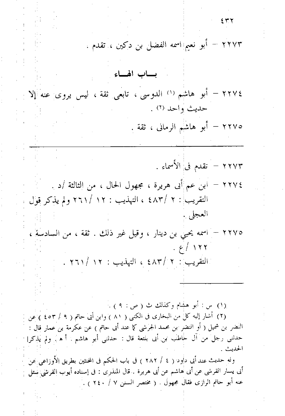 2274 - أَبُو هَاشم الدوسي تَابِعِيّ ثِقَة لَيْسَ يرْوى عَنهُ إِلَّا حَدِيث وَاحِد