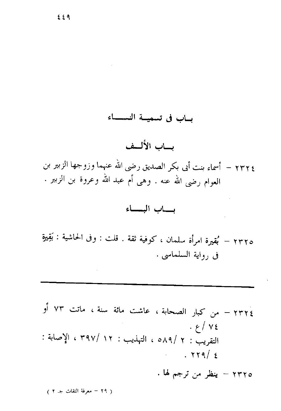 2325 - بقيرة امْرَأَة سلمَان كوفية ثِقَة قلت وفى الْحَاشِيَة بقيرة فِي رِوَايَة السلماسى