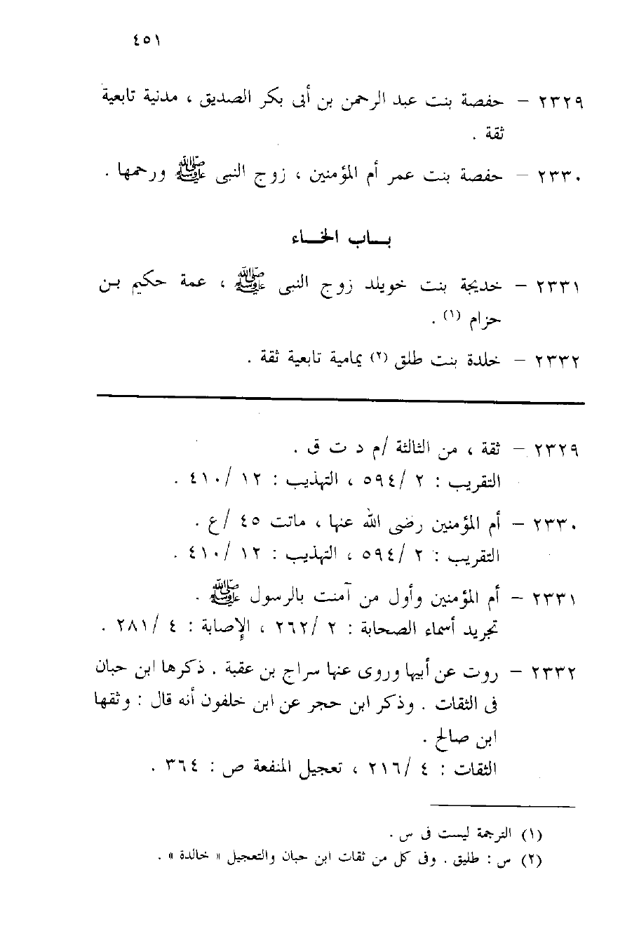 2331 - خَدِيجَة بنت خويلد زوج النَّبِي صلى الله عَلَيْهِ وَسلم عمَّة حَكِيم بن حزَام