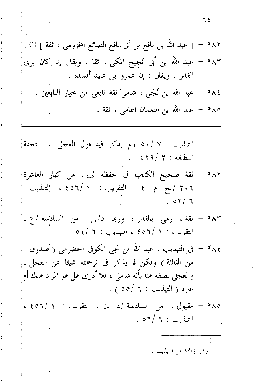 983 - عبد الله بن أبي نجيح الْمَكِّيّ ثِقَة وَيُقَال إِنَّه كَانَ يرى الْقدر وَيُقَال إِن عَمْرو بن عبيد افسده