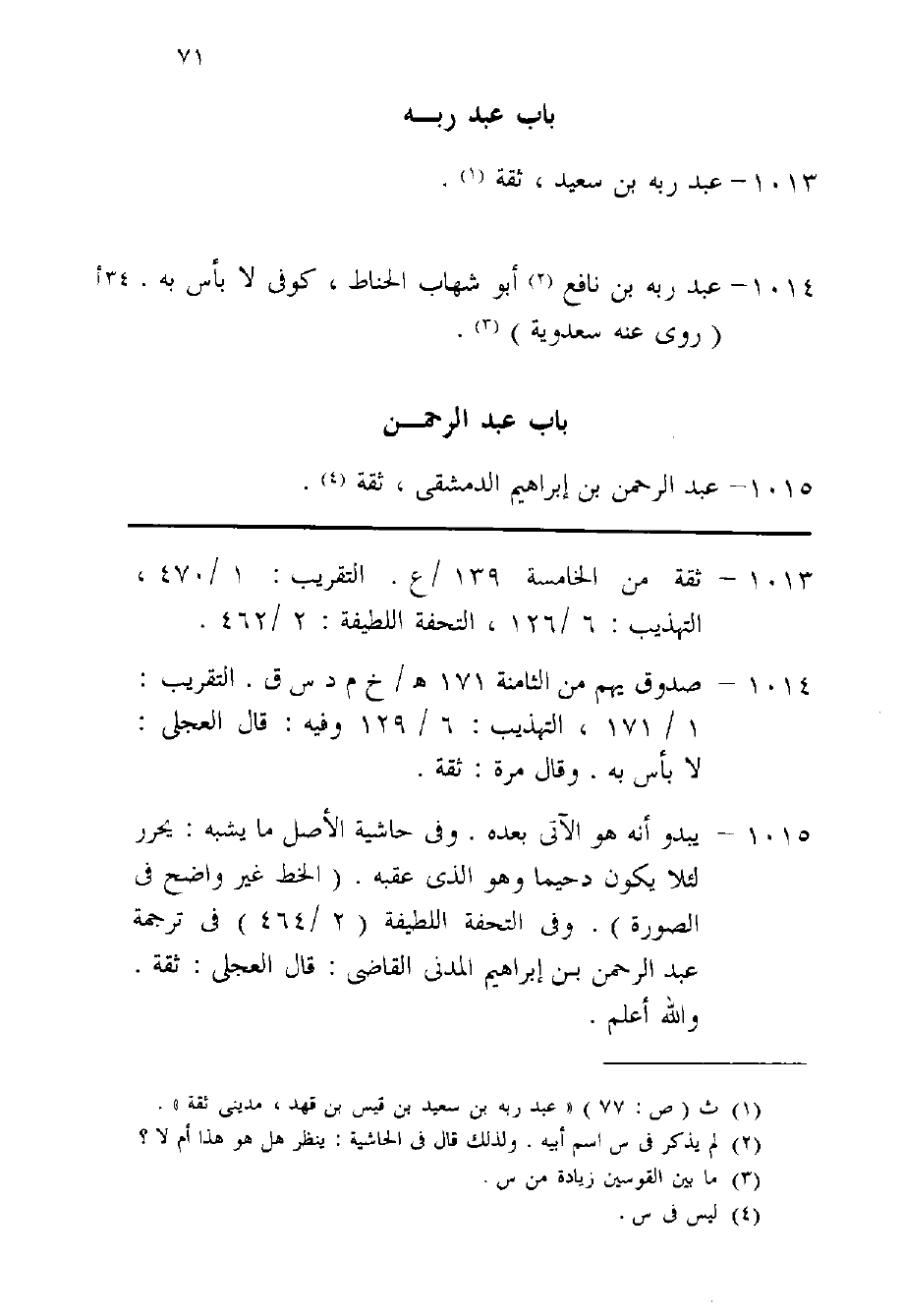 1014 - عبد ربه بن نَافِع أَبُو شهَاب الحناط كوفى لَا بَأْس بِهِ روى عَنهُ سَعْدَوَيْه