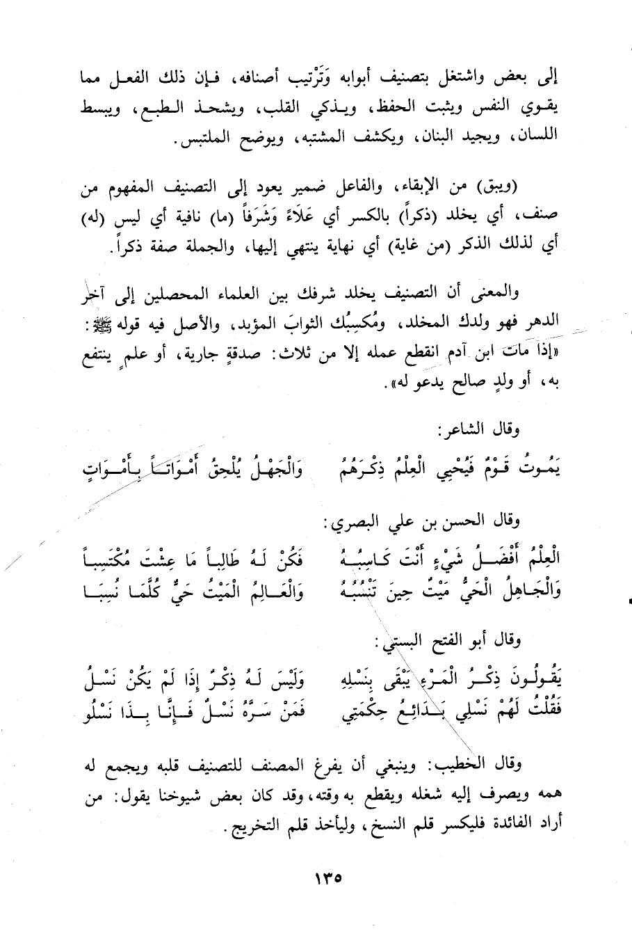 الْعِلْمُ أفْضَلُ شَيْءٍ أنْتَ كَاسِبُه ... فَكُنْ لَهُ طَالِباً مَا عِشْتَ مُكْتَسِباً