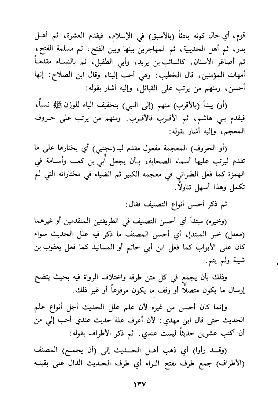 وإنما كان أحسن من غيره لأن علم علل الحديث أجل أنواع علم الحديث حتى قال ابن مهدي: لأن أعرف علة حديث عندي أحب إلي من أن أكتب عشرين حديثاً ليست عندي. ثم ذكر الأطراف بقوله: