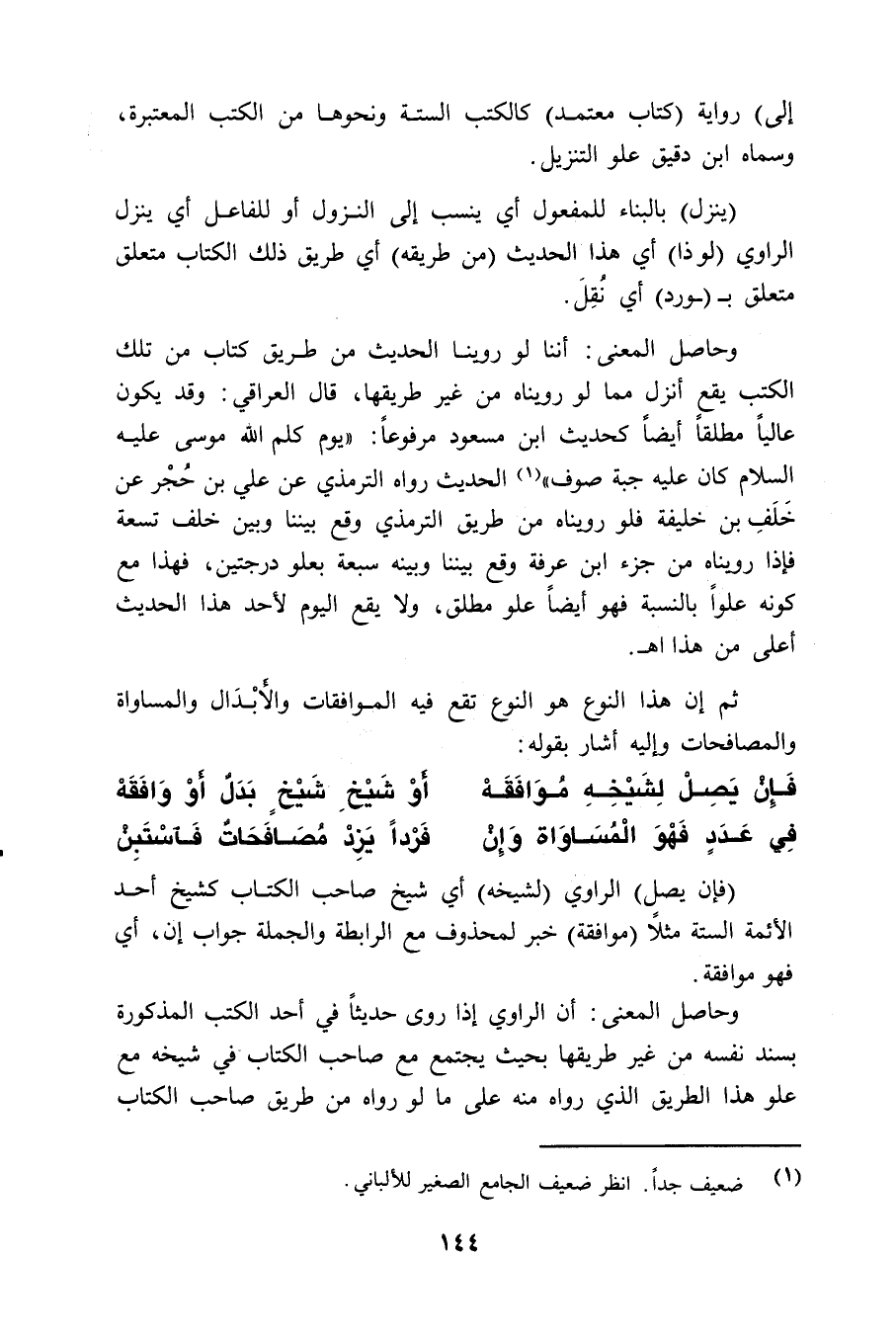 إلى) رواية (كتاب معتمد) كالكتب الستة ونحوها من الكتب المعتبرة، وسماه ابن دقيق علو التنزيل.